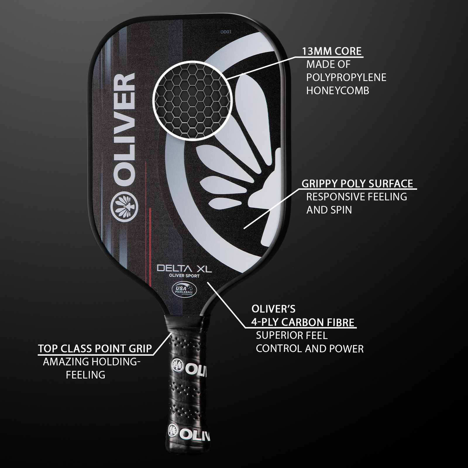✔️ Designed for Professional Players, USAPA Approved: Crafted for adult and professional players, the DELTA XL meets all USAPA standards for competitive play. This paddle offers the performance, reliability, and precision needed for high-level competition.