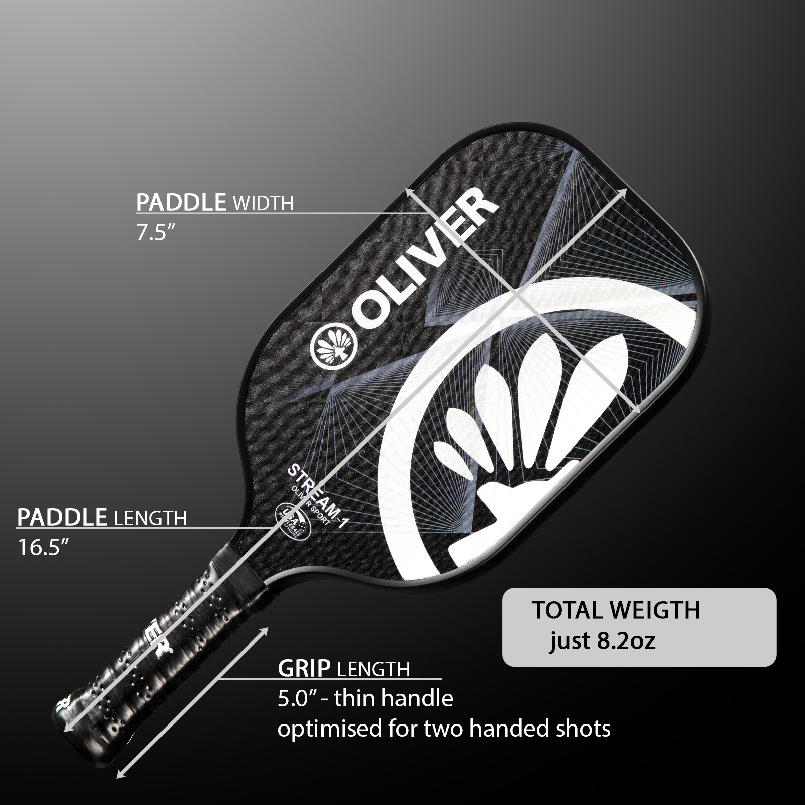 ✔️Optimal Weight for Performance and Maneuverability: Weighing 8.2 oz, the Stream-1 Black/White is balanced for both power and maneuverability. This weight range allows players to handle the paddle comfortably while delivering powerful shots.