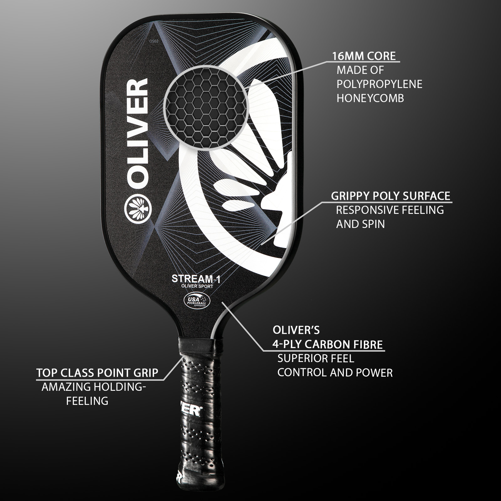 ✔️4-Layer Carbon Fiber System with OLIVER Metacarbon Technology: The 4-layer carbon fiber system combined with a grippy poly finish provides an excellent mix of dynamics, control, power, and spin. This ensures players can execute powerful and controlled shots with ease.
